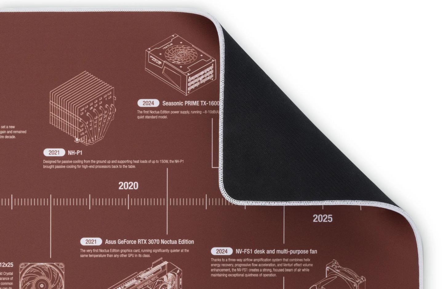 A fabricante austríaca Noctua está comemorando duas décadas de história no mercado de coolers. Para marcar a data, a empresa conhecida por seus ventiladores bege e marrom lança um mouse pad gigante que funciona como linha do tempo interativa da marca.