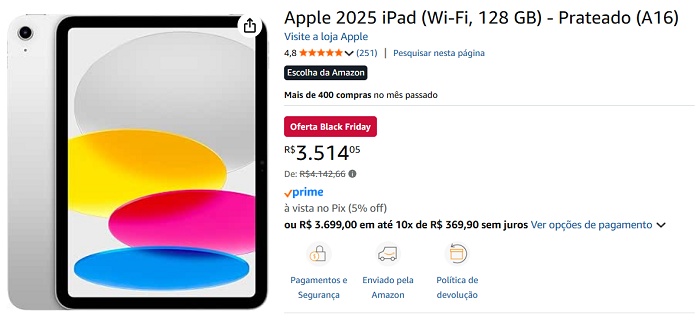 Oferta Esquenta Black Friday traz iPad 2025 (128GB) por R.514. Confira!