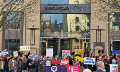 Protestos em frente à sede da Rockstar em Edimburgo e Londres; veja as imagens